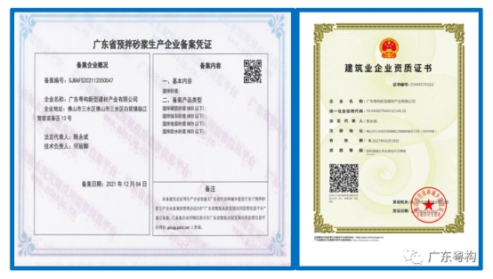 2月18日,廣東粵構(gòu)新型建材產(chǎn)業(yè)有限公司成功取得《預(yù)拌混凝土資質(zhì)證書》,預(yù)計(jì)將于2022年10月全面生產(chǎn)。